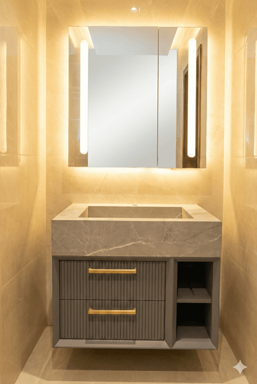 In the embrace of a bathroom full of peace, the "Roja Cabin" model 1002 cabinet vanity stands out like a shining jewel. Its unique design and artistic lines are a combination of the splendor of modernity and enduring authenticity. Every morning, touching its polished and beautiful surface gives your soul a sense of freshness and cleanliness. This masterpiece, made using the highest quality materials, is not just a vanity, but a work of art for your space. Spacious and smart cabinets bring order to the environment and hide chaos from view. Its soothing color and ergonomic design reflect the quality and precision of its construction. With each use, the lifestyle whisperer will be luxurious and full of beauty. With this model, Roja Cabin has presented a new definition of art and efficiency in the sanitary space. Let Model 3223 be the focal point of beauty and tranquility in your home. This choice is a manifestation of your pure and valuable taste.